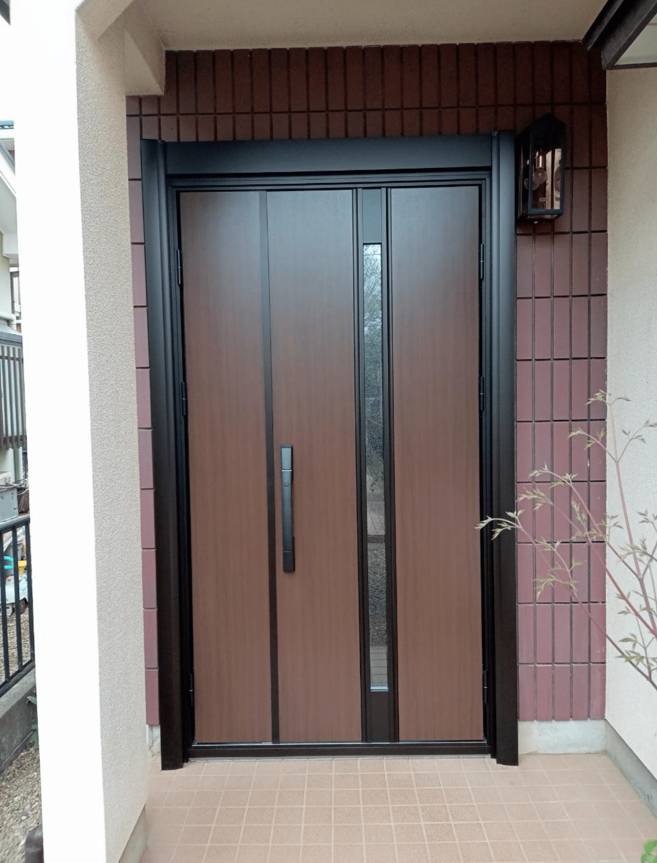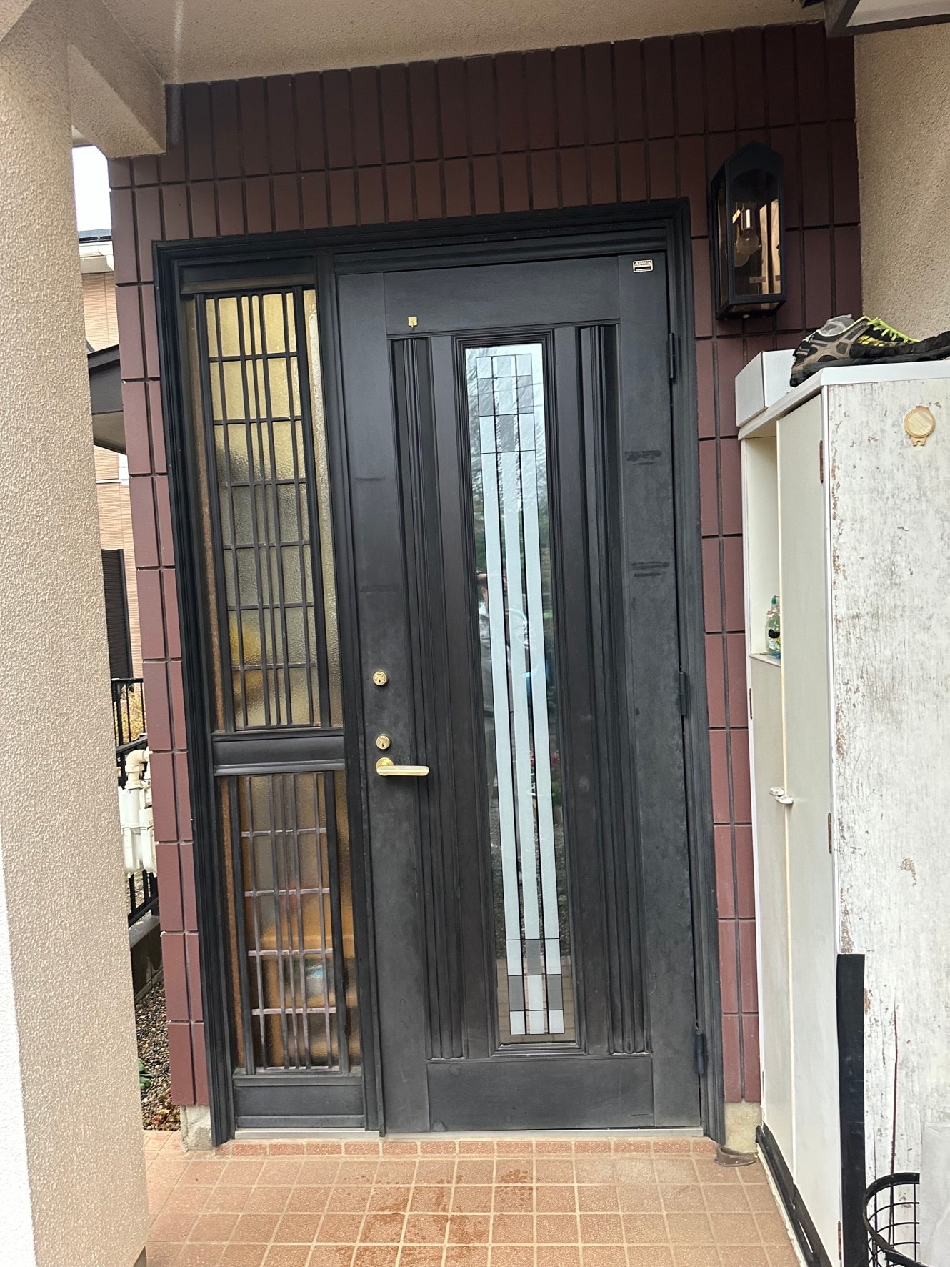 玄関ドアは歪みが強かった為、カバー工法にて交換致しました。