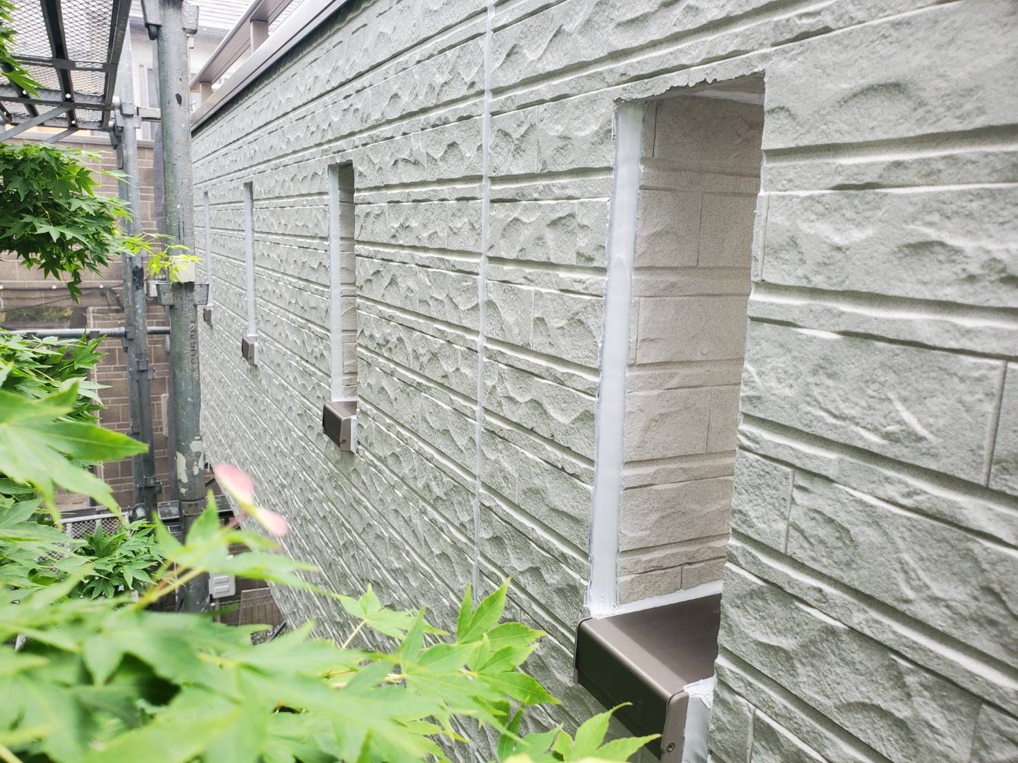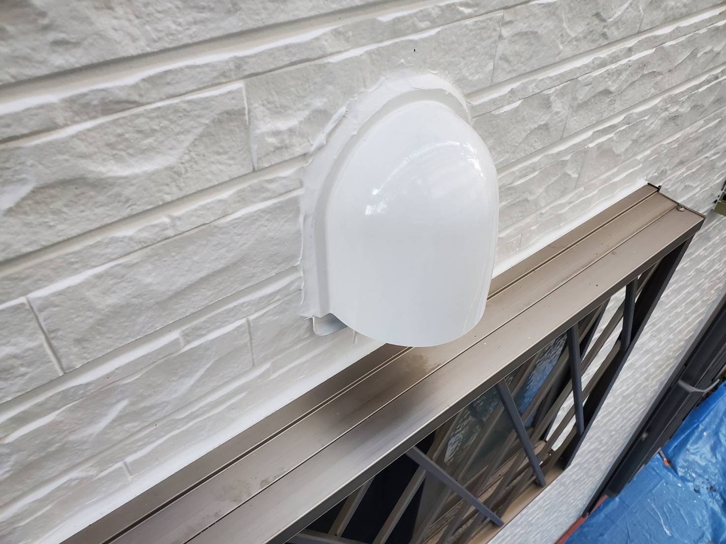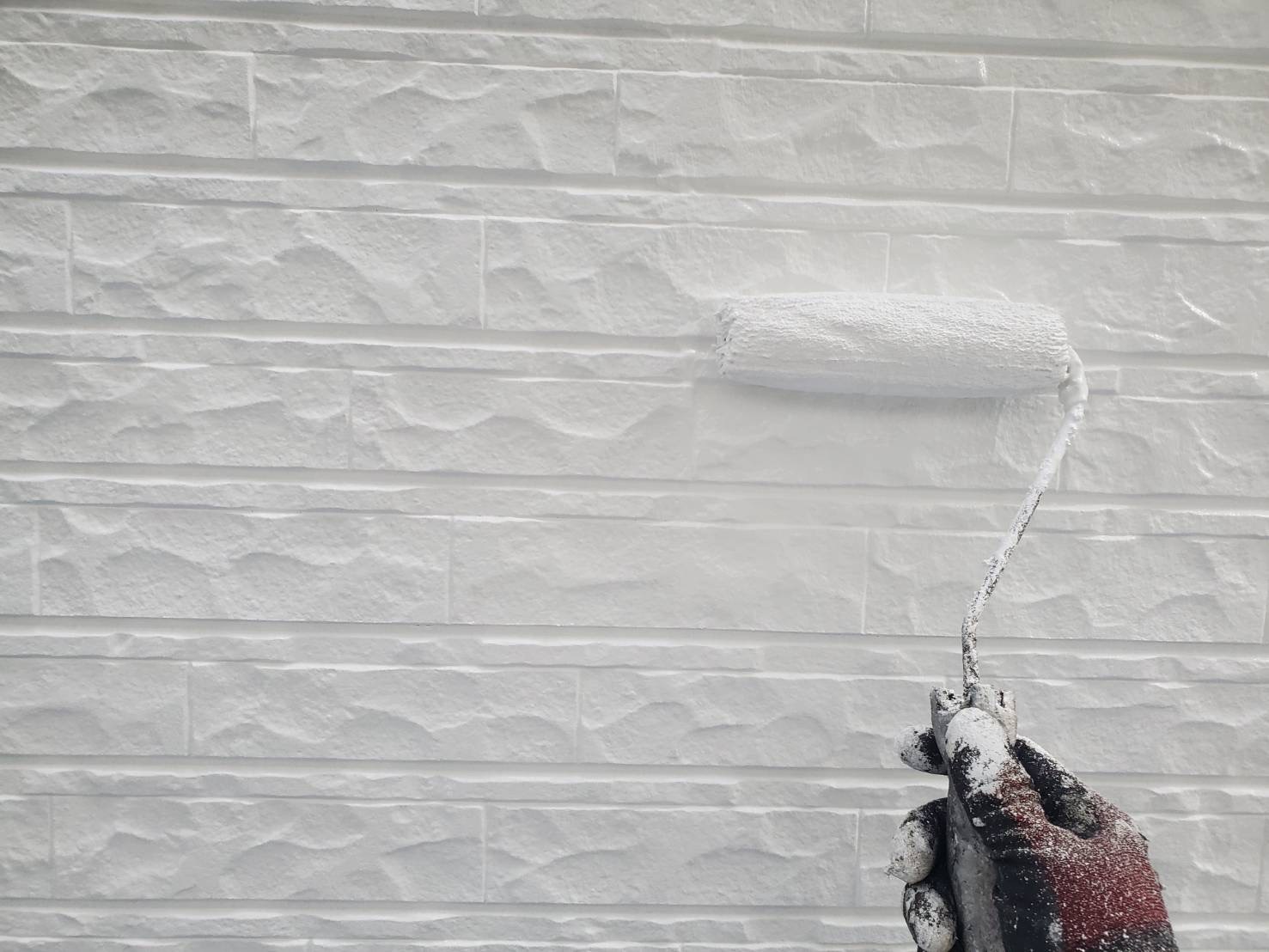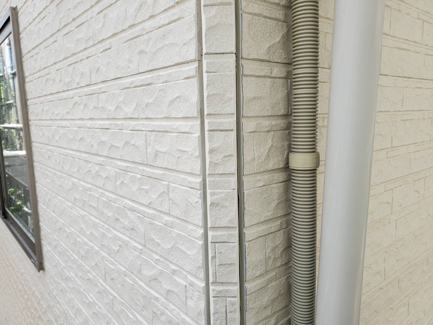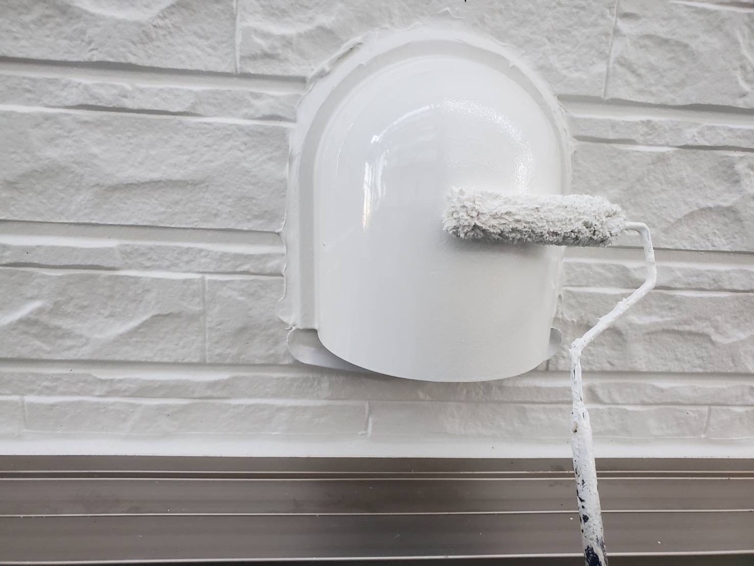 元々、新築時に外壁を白で注文していたが、仕上がってみると白にクリームが入っている色合いになった為、新築時の希望の色にしたいがコケがきになる。、との事でしたので、塗料は、日本ペイントのグランセラトップ1液水性を推奨致しました。こちらの塗料は耐久性も約20年と長寿命でありながら、通常はオプションの強力防かび仕様が標準仕様で入っていまして、カビの発生に非常にしずらい塗料ですので、白系にて塗装しても心配が少ない為、ご提案致しました。