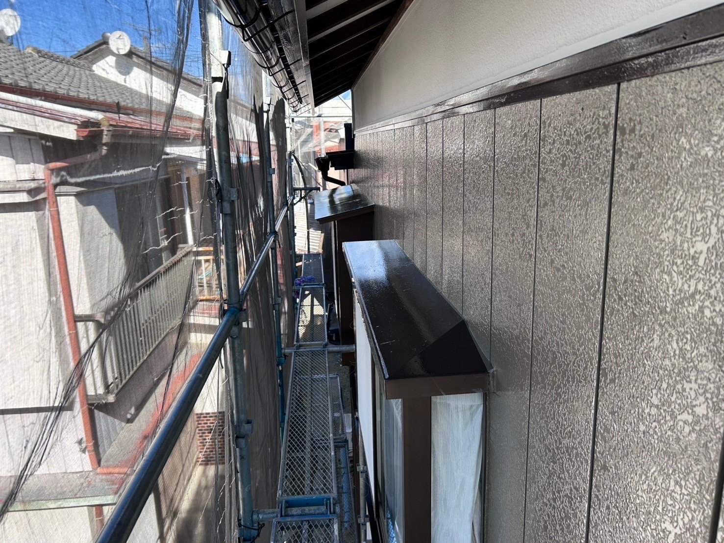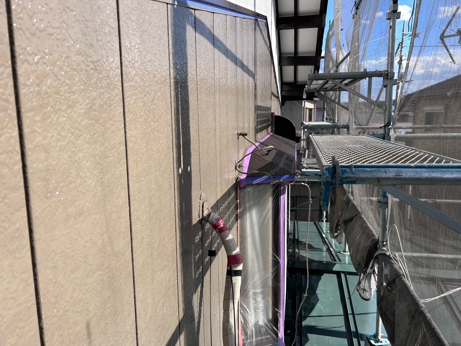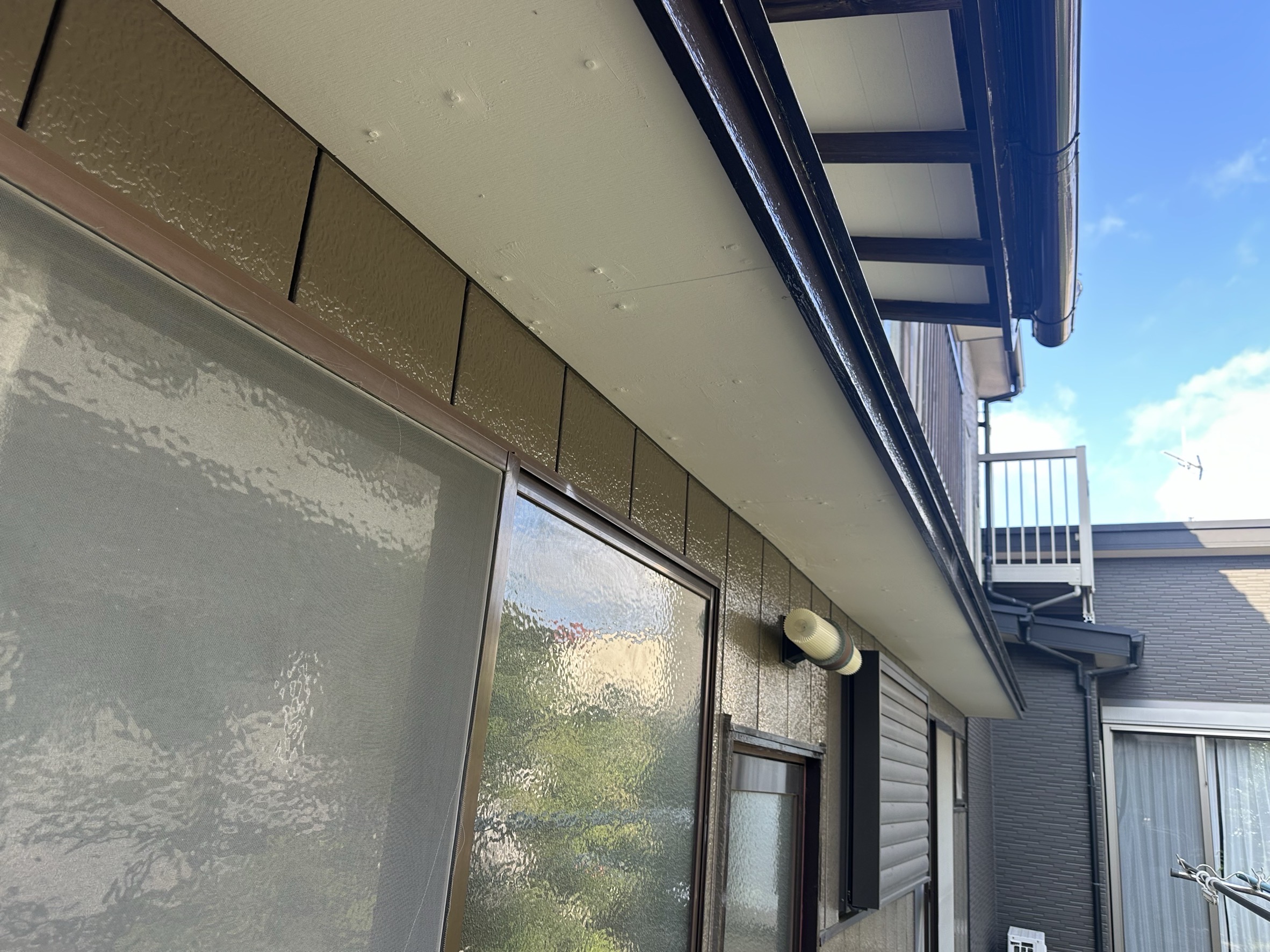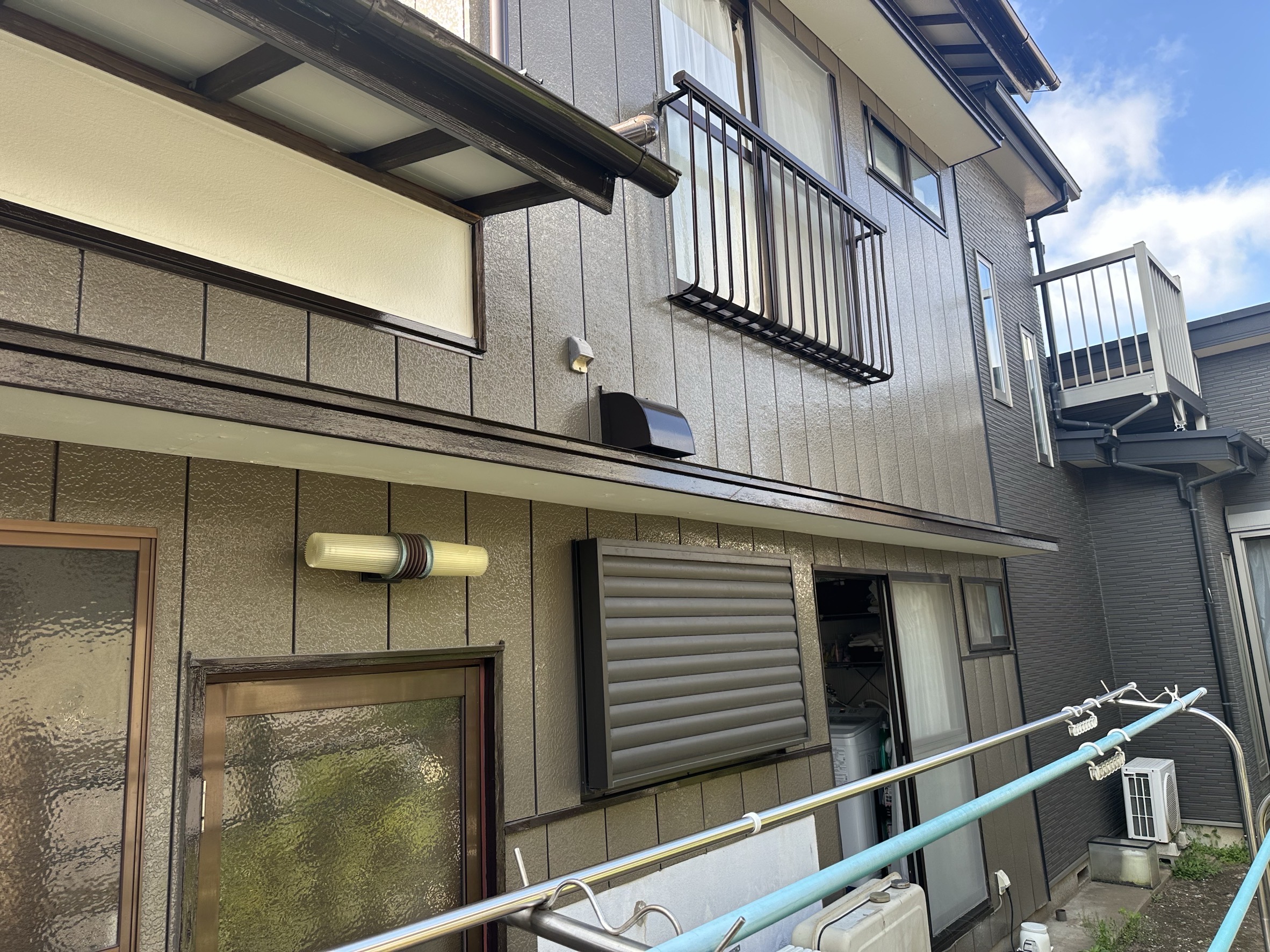 外壁は全てケレン処理を実施し、脆弱な塗膜は除去した後に、下塗りにパーフェクトプライマーを塗布し、ファインパーフェクトトップを中塗り、上塗りにて仕上げました。