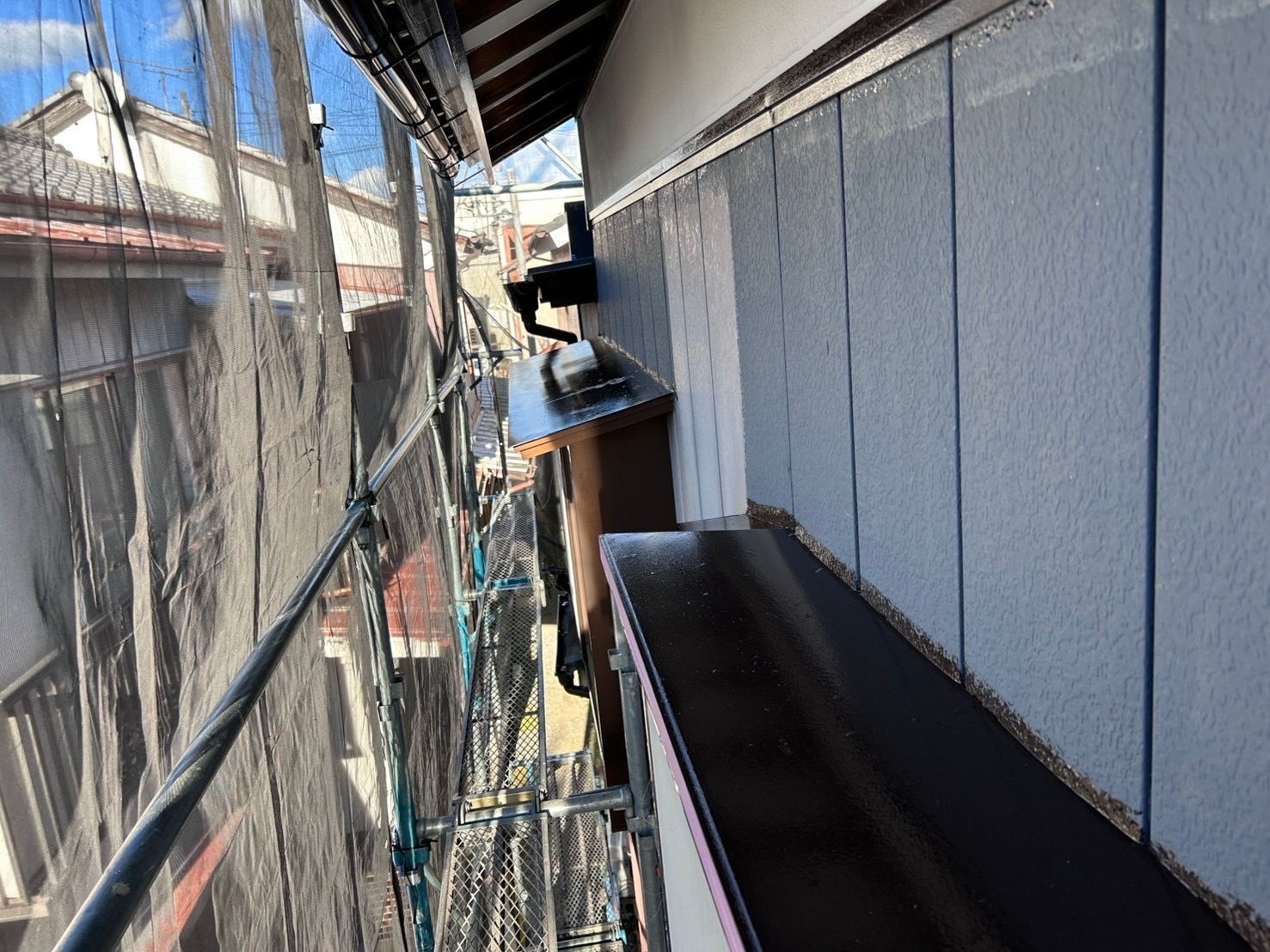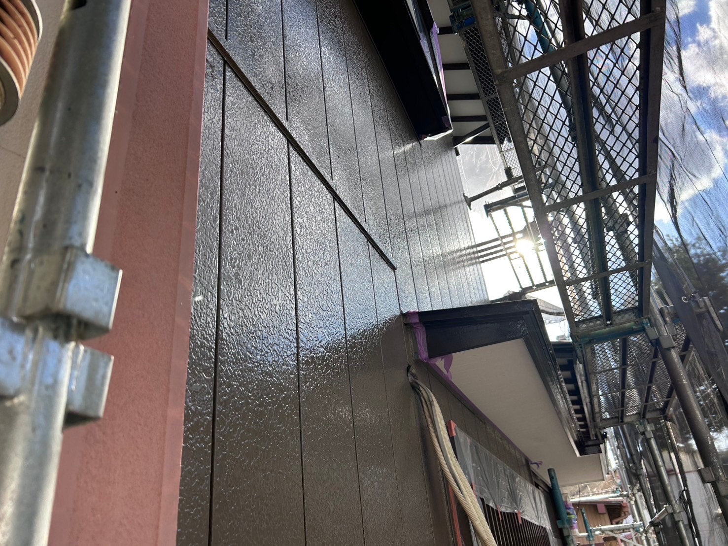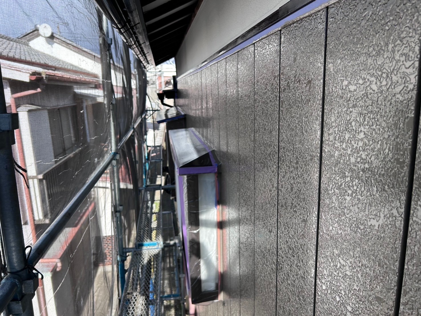 外壁は全てケレン処理を実施し、脆弱な塗膜は除去した後に、下塗りにパーフェクトプライマーを塗布し、ファインパーフェクトトップを中塗り、上塗りにて仕上げました。
