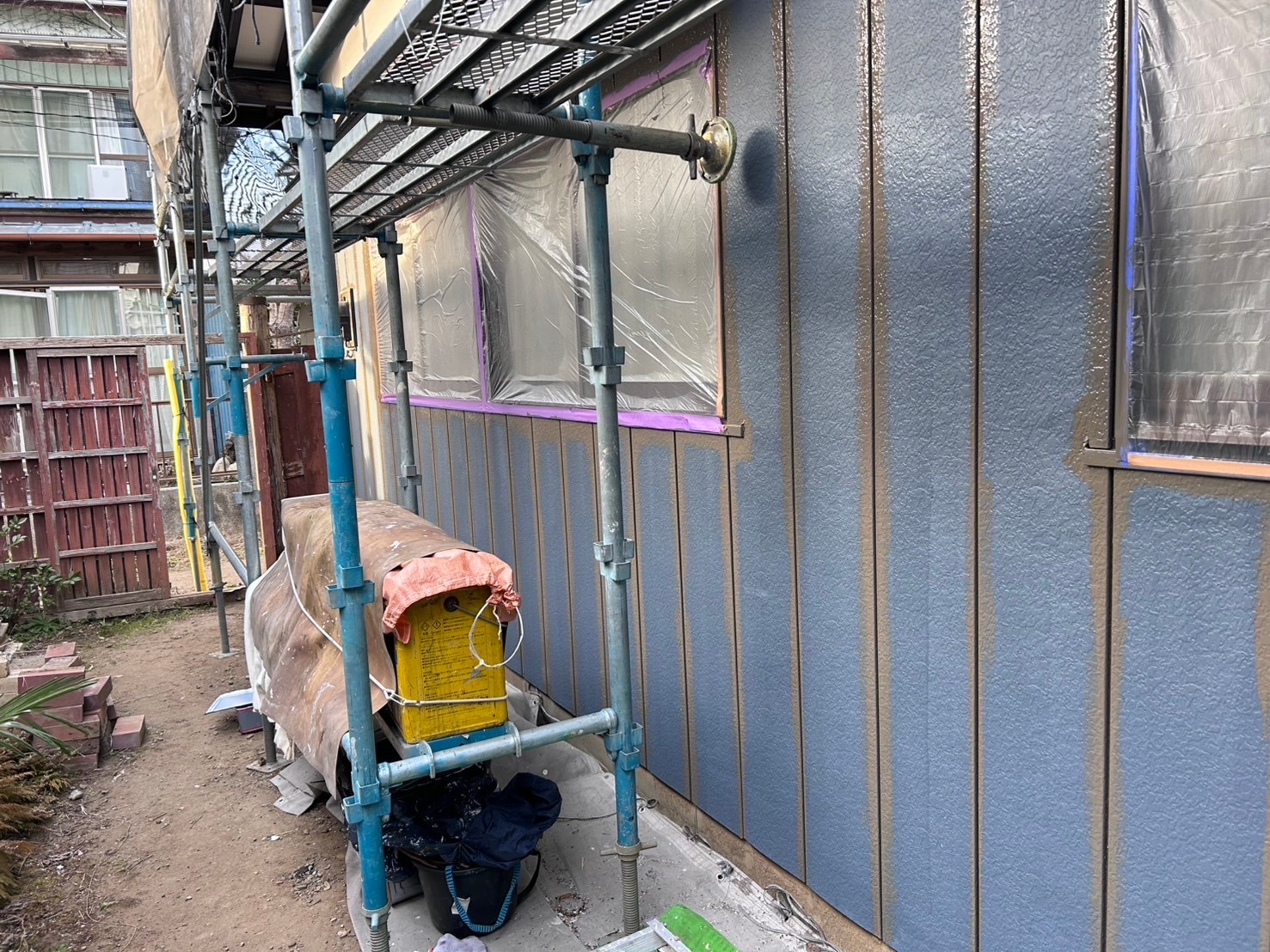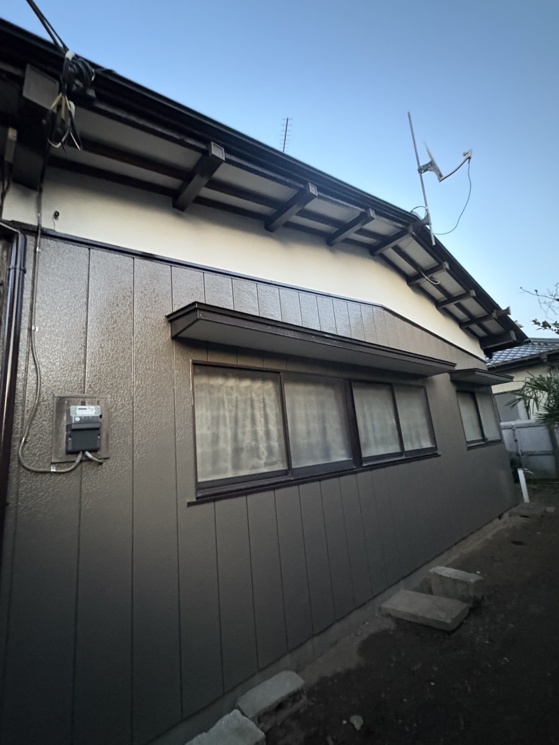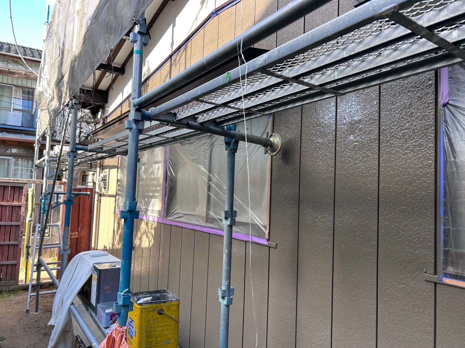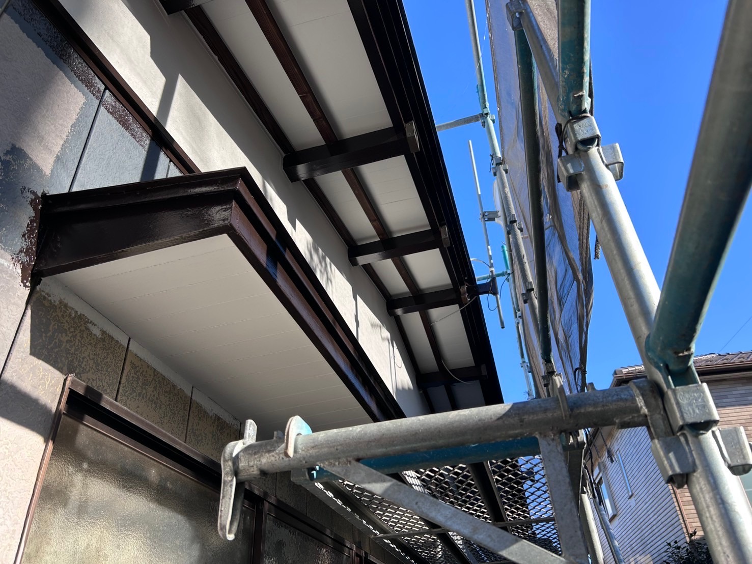 外壁は全てケレン処理を実施し、脆弱な塗膜は除去した後に、下塗りにパーフェクトプライマーを塗布し、ファインパーフェクトトップを中塗り、上塗りにて仕上げました。