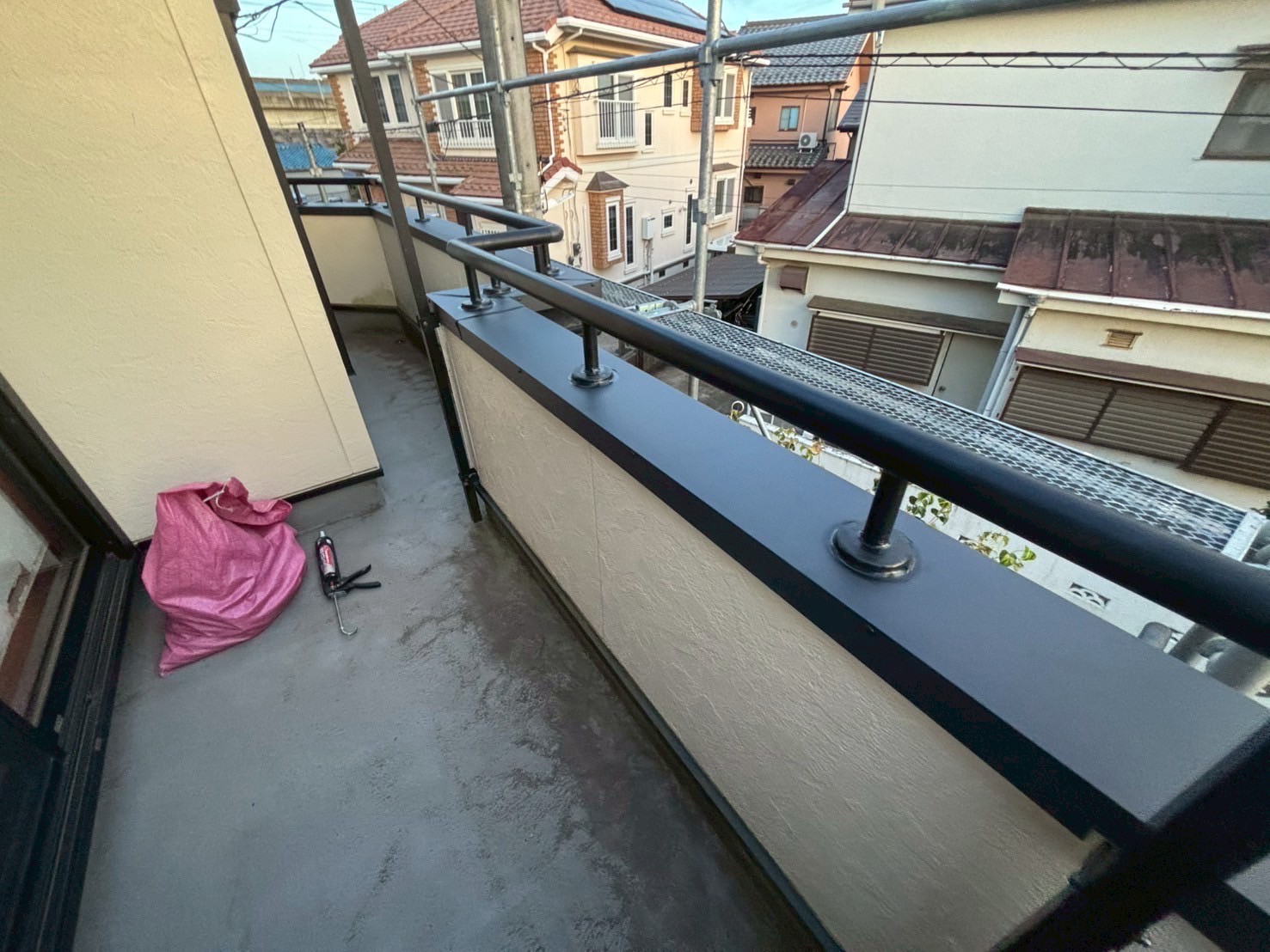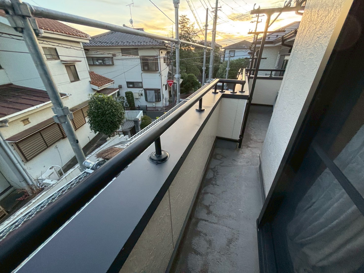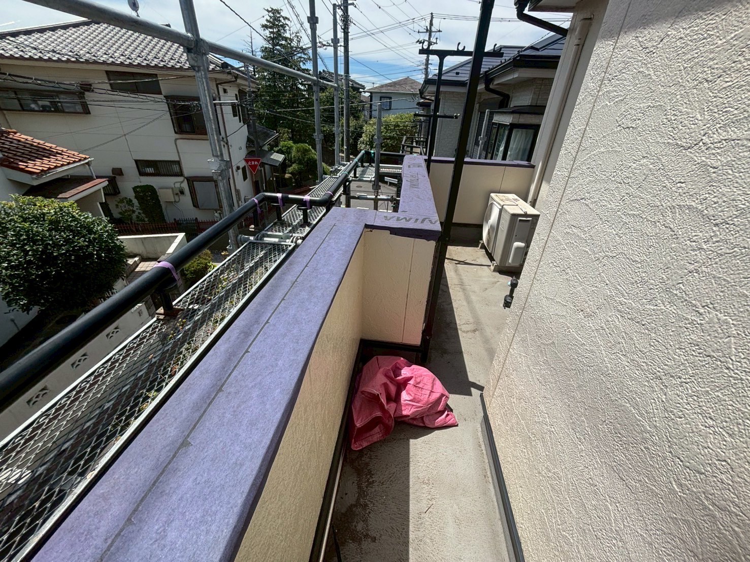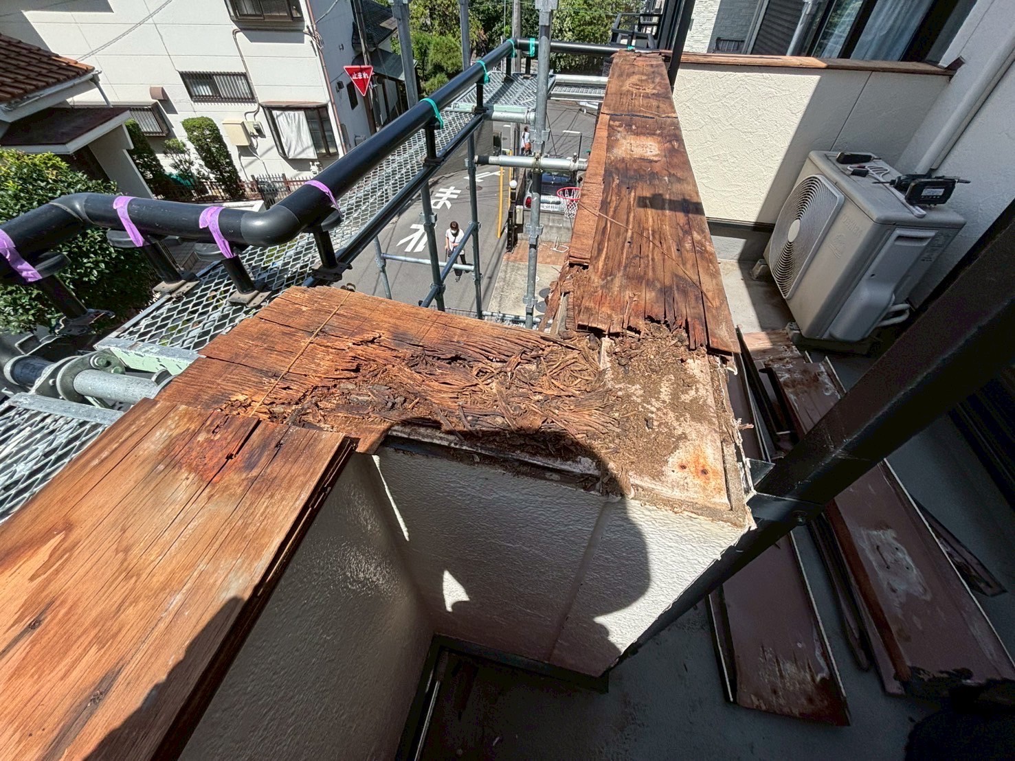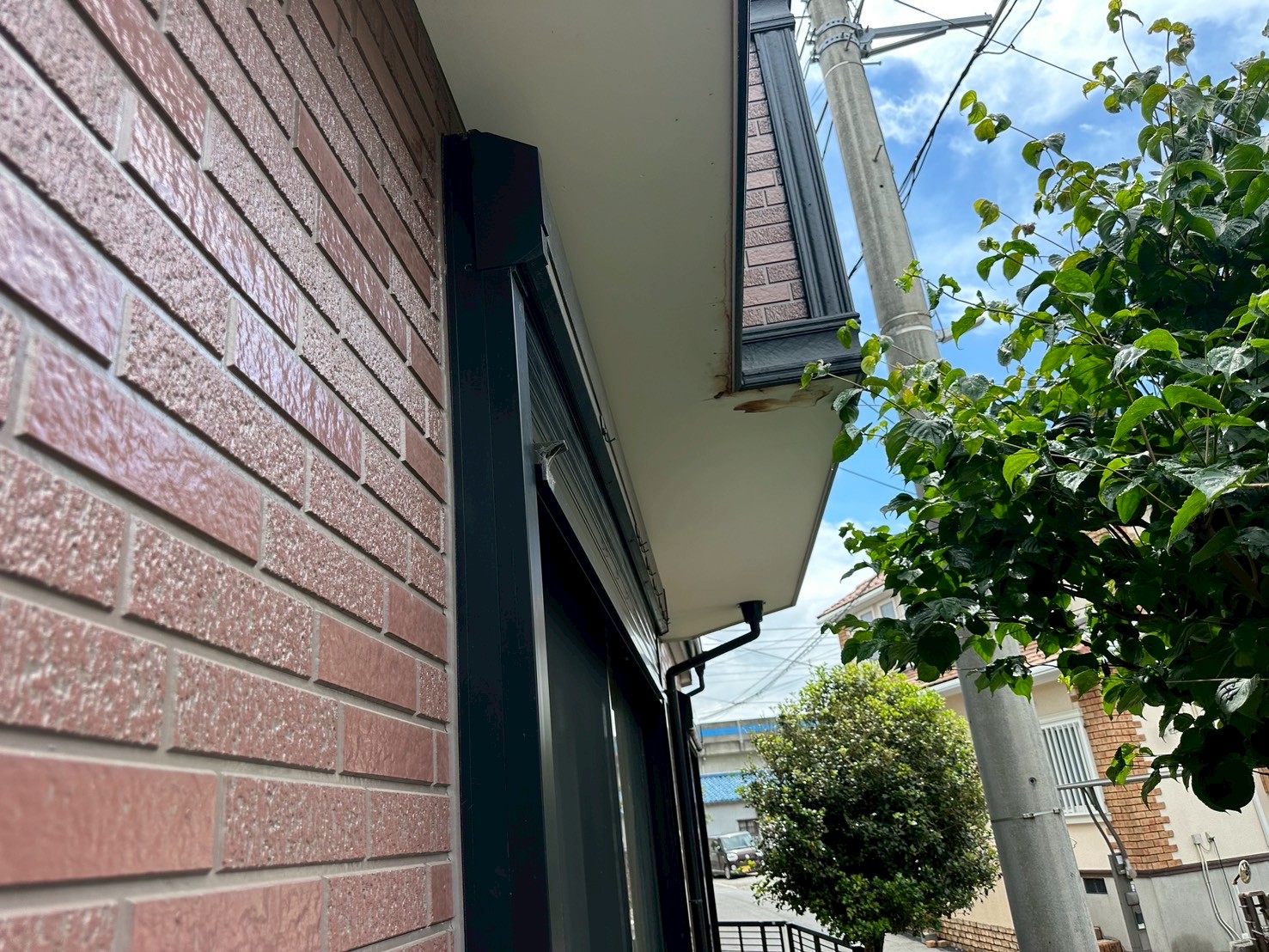 施工にあたり足場工事、笠木交換、軒天張り替え、そして軒天塗装で仕上げました。