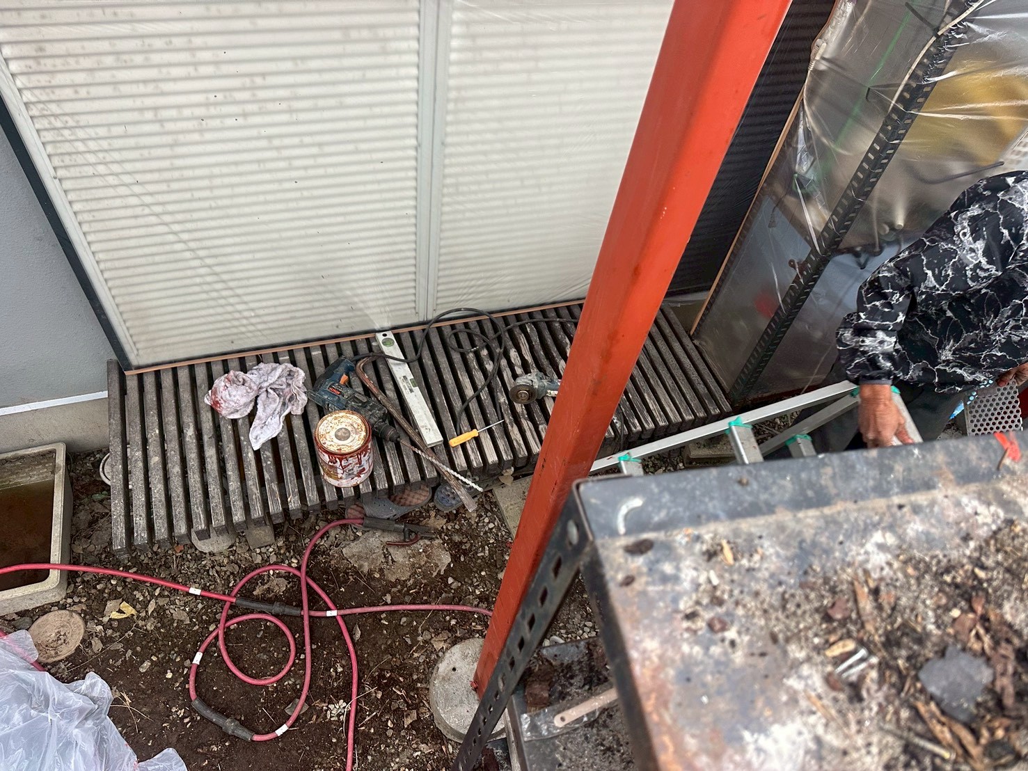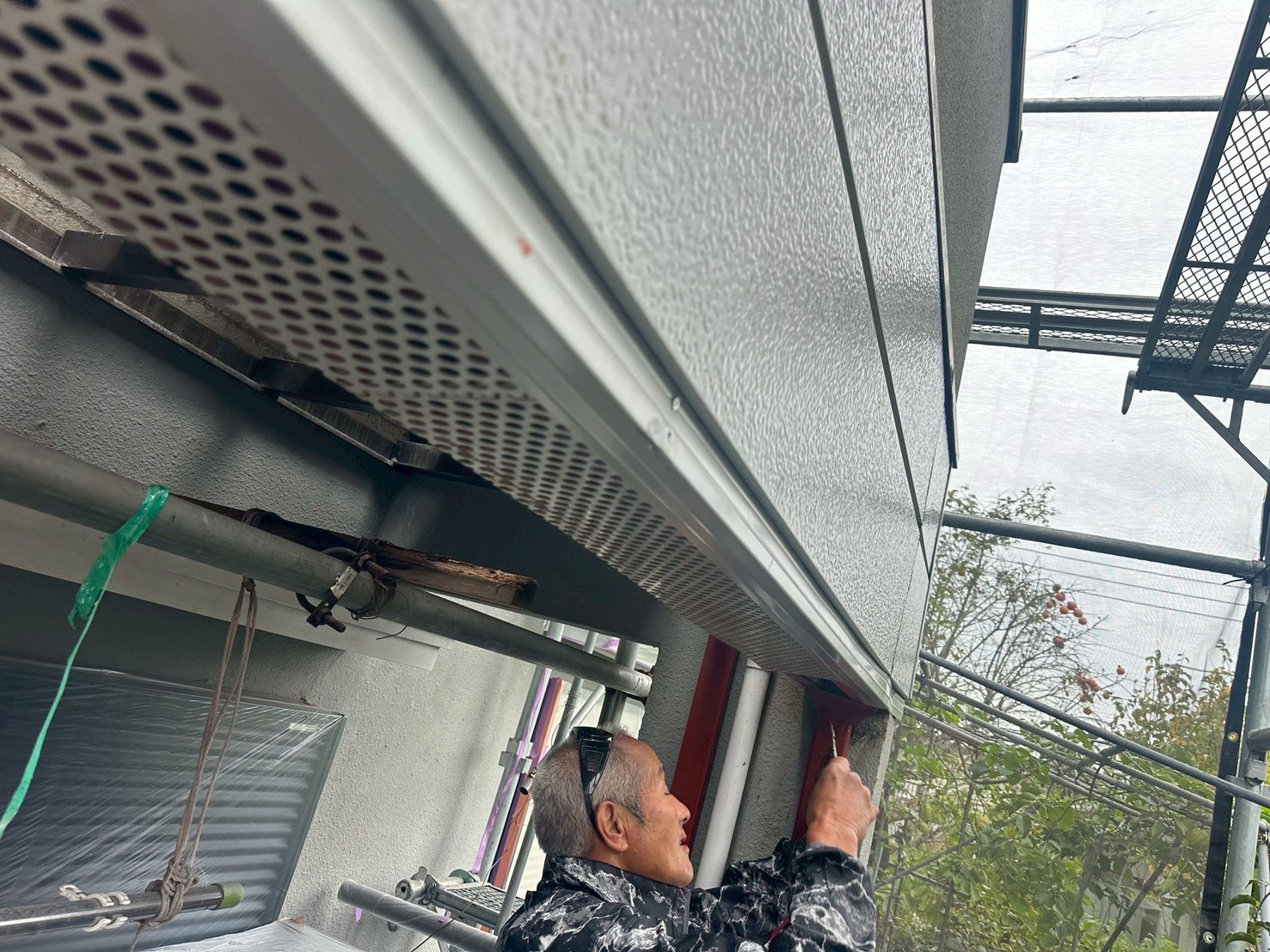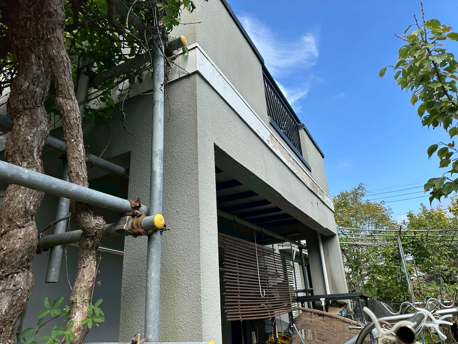 外壁屋根塗装、ベランダ外側貼替え、鉄骨下地、溶接、補強柱設置