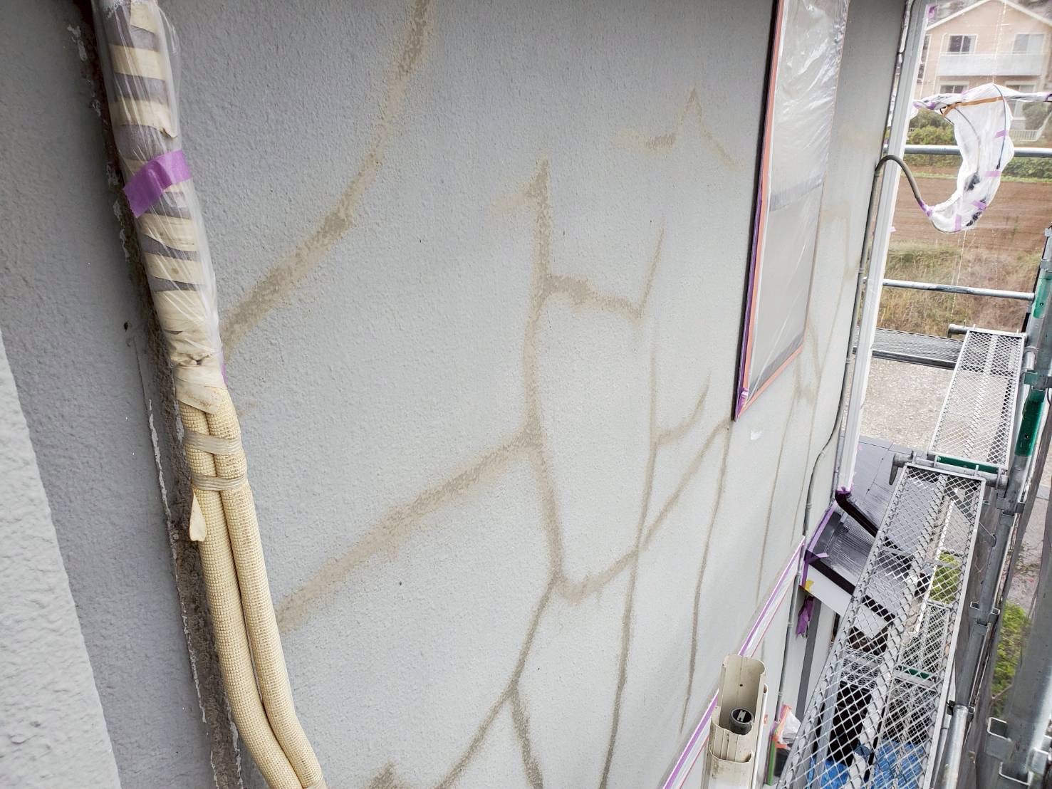 経年劣化による外壁ひび割れ、ベランダ外側の外壁割れを起こし落下しそうな状態であったため、急務の施工依頼でした。