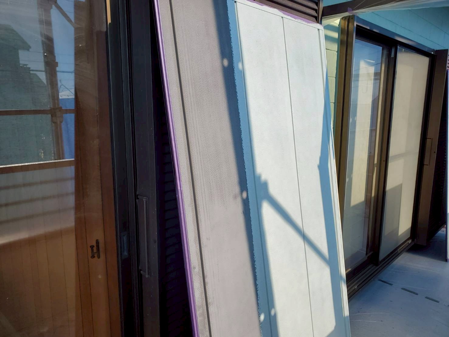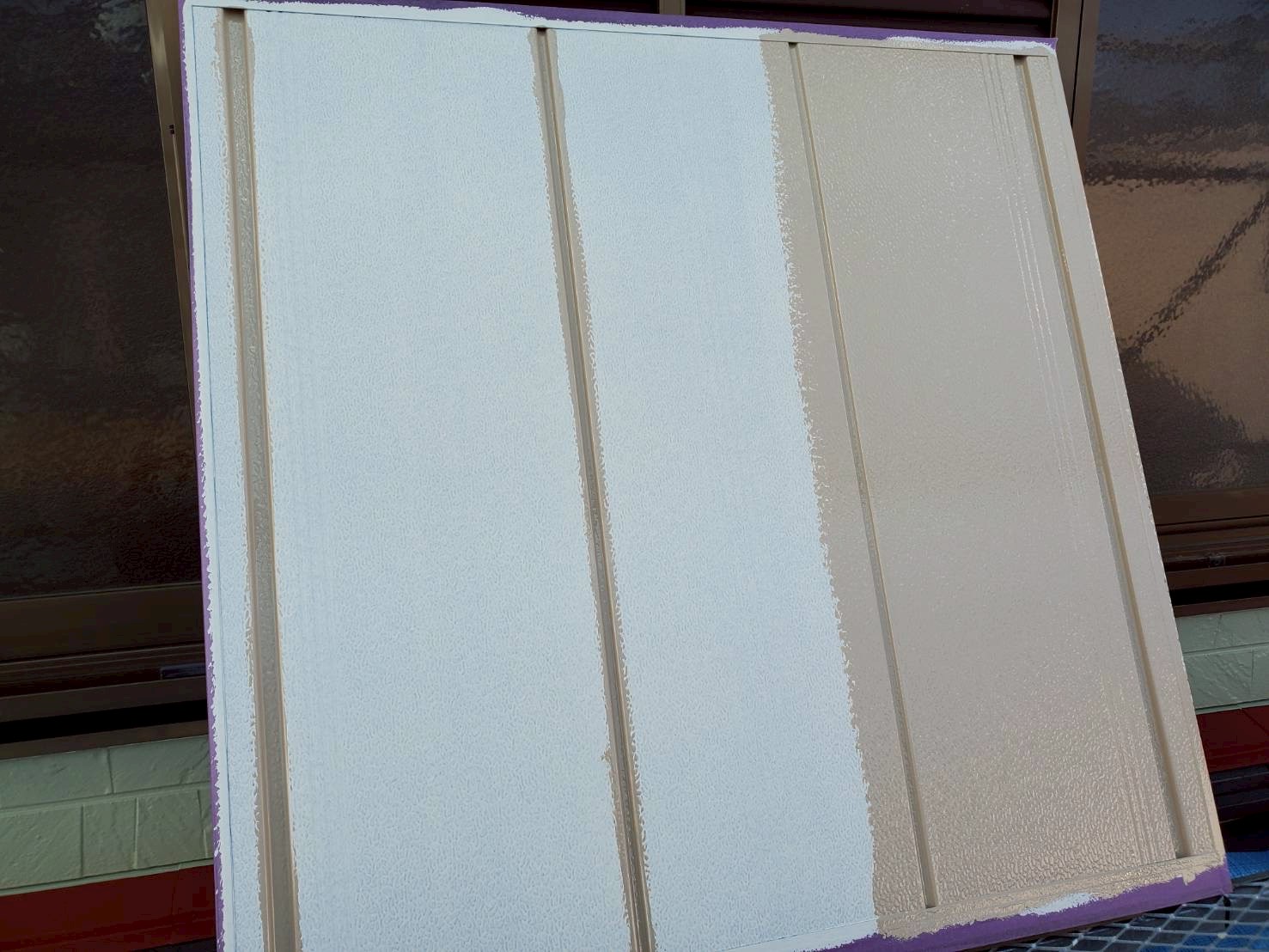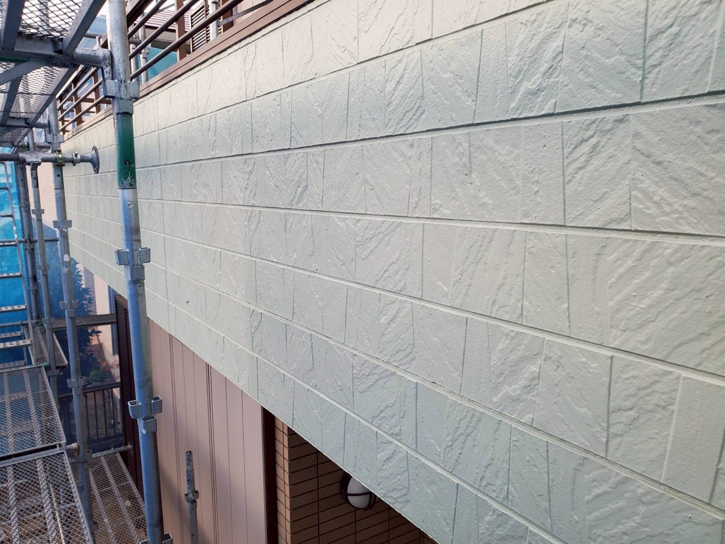 対策として、外壁はベランダ面に剥がれ等傷みが見られた為、下塗りを付着性が強いパーフェクトシーラーにて塗布し、肉厚をつけるパーフェクトサーフを塗り、上塗り含めて4回塗りにて仕上げました。