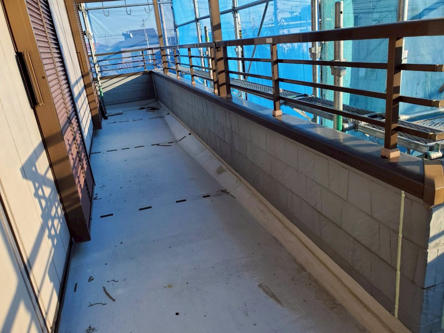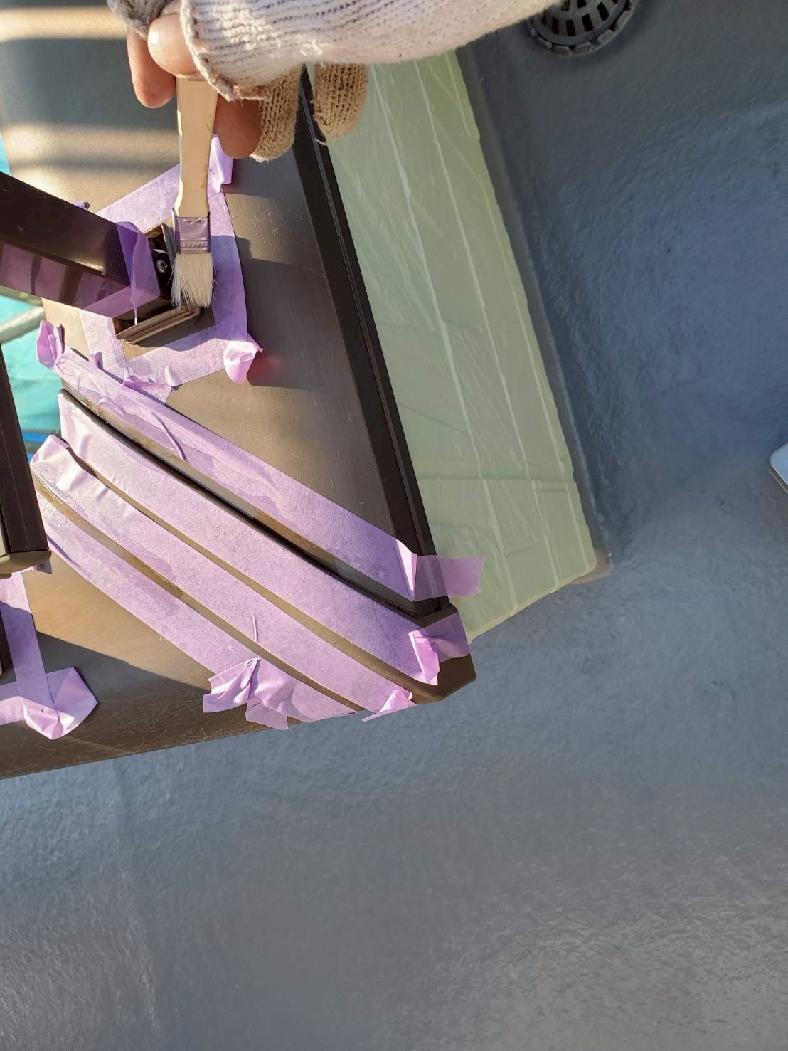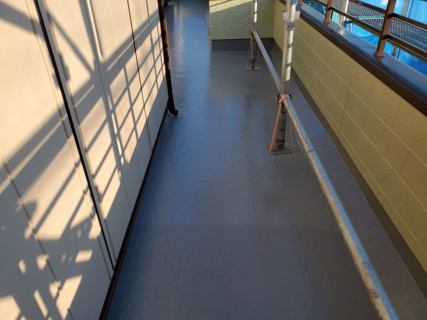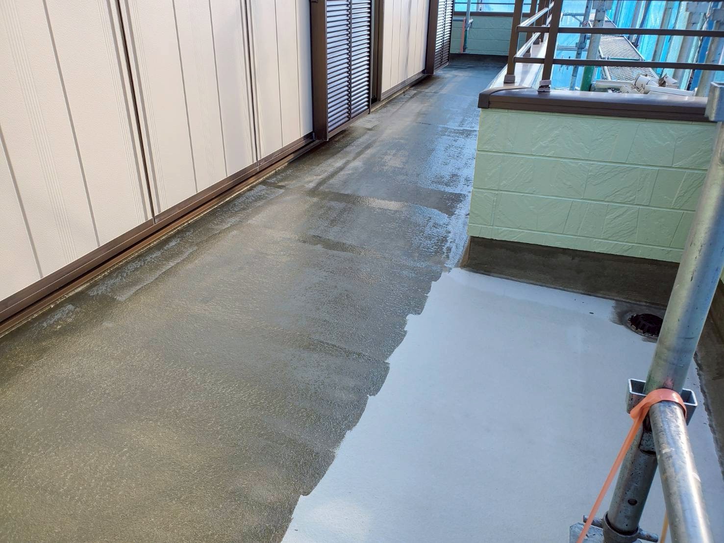 ベランダについては、床面は残存テープを除去し、レジアンダーにて下地強化。ウレアックスHGを塗布する事により長期間の保護を実現しました。