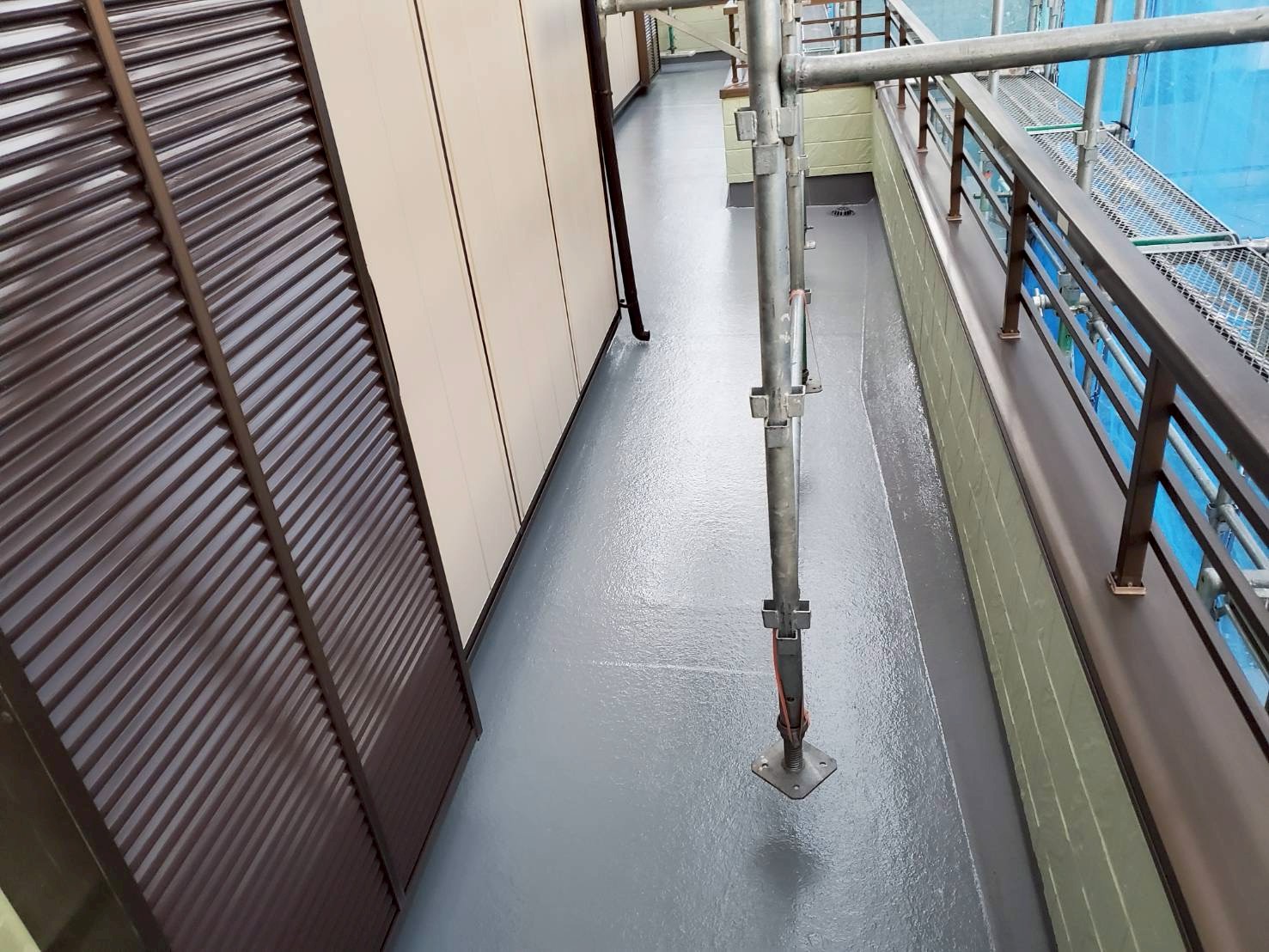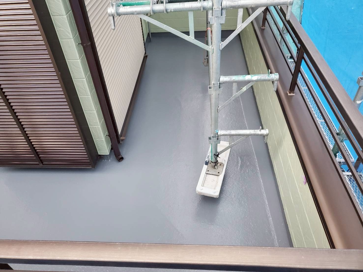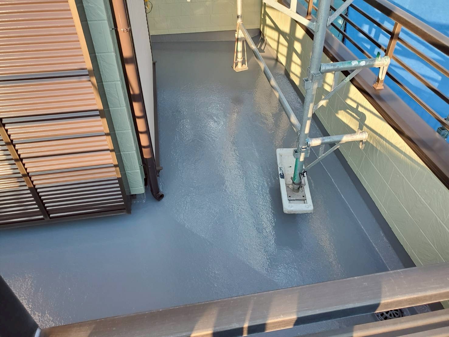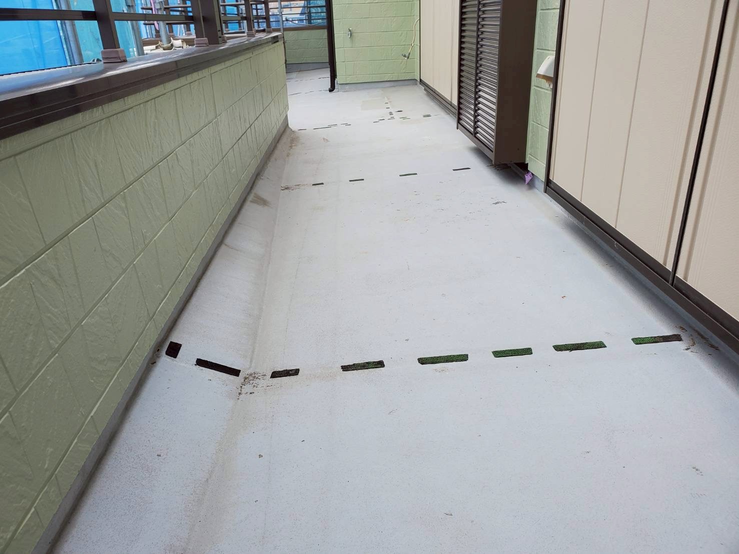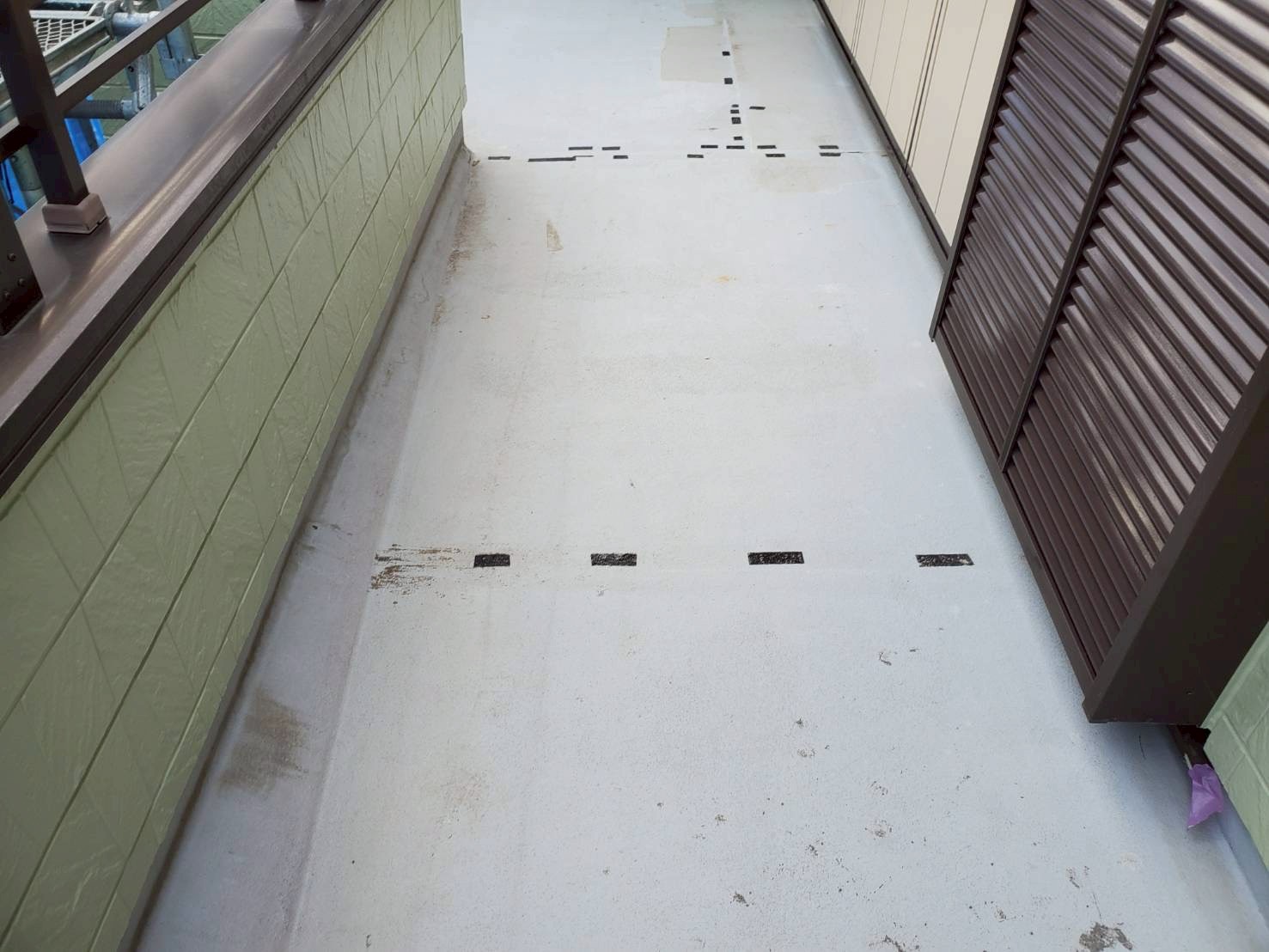 ベランダについては、床面は残存テープを除去し、レジアンダーにて下地強化。ウレアックスHGを塗布する事により長期間の保護を実現しました。