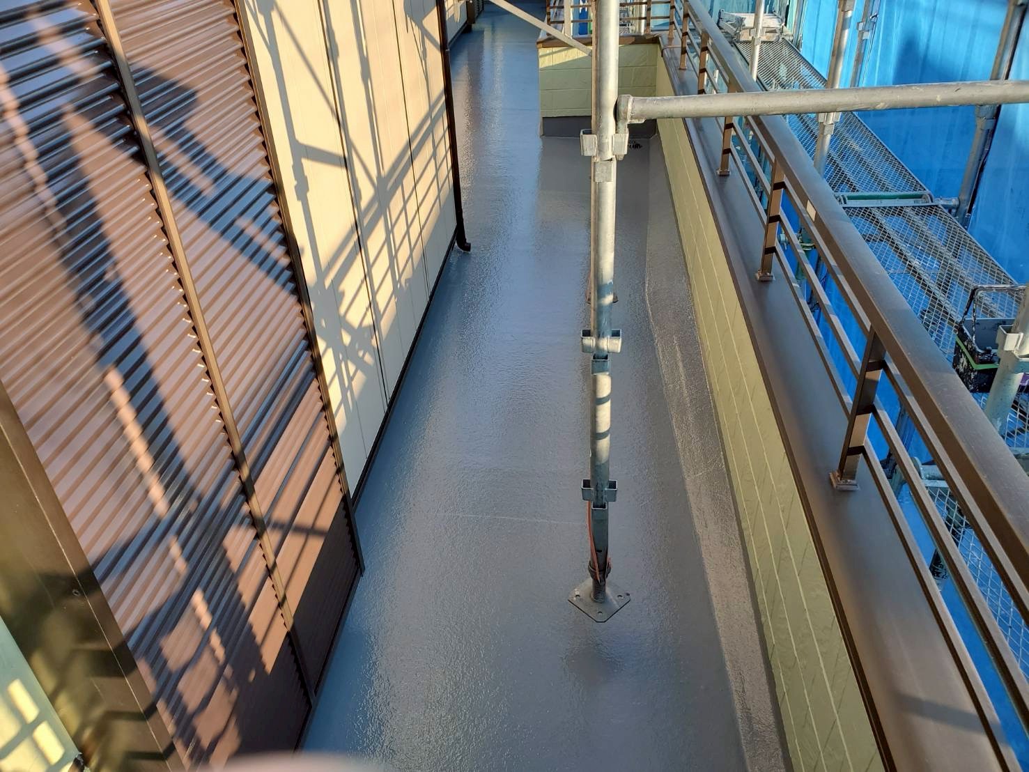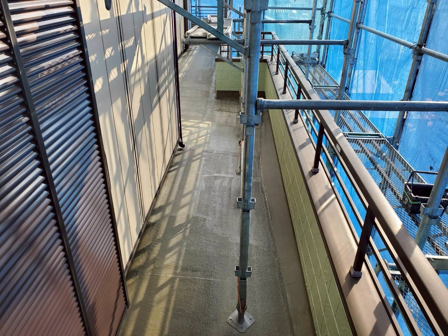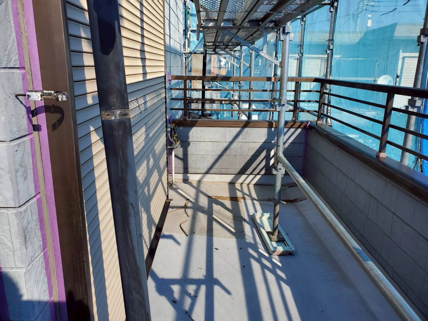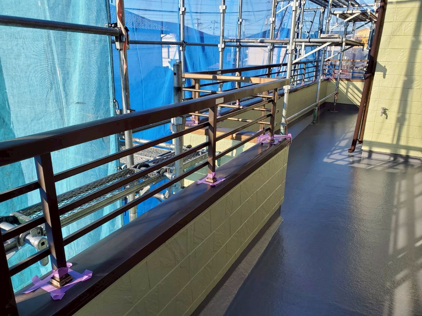 ベランダについては、床面は残存テープを除去し、レジアンダーにて下地強化。ウレアックスHGを塗布する事により長期間の保護を実現しました。